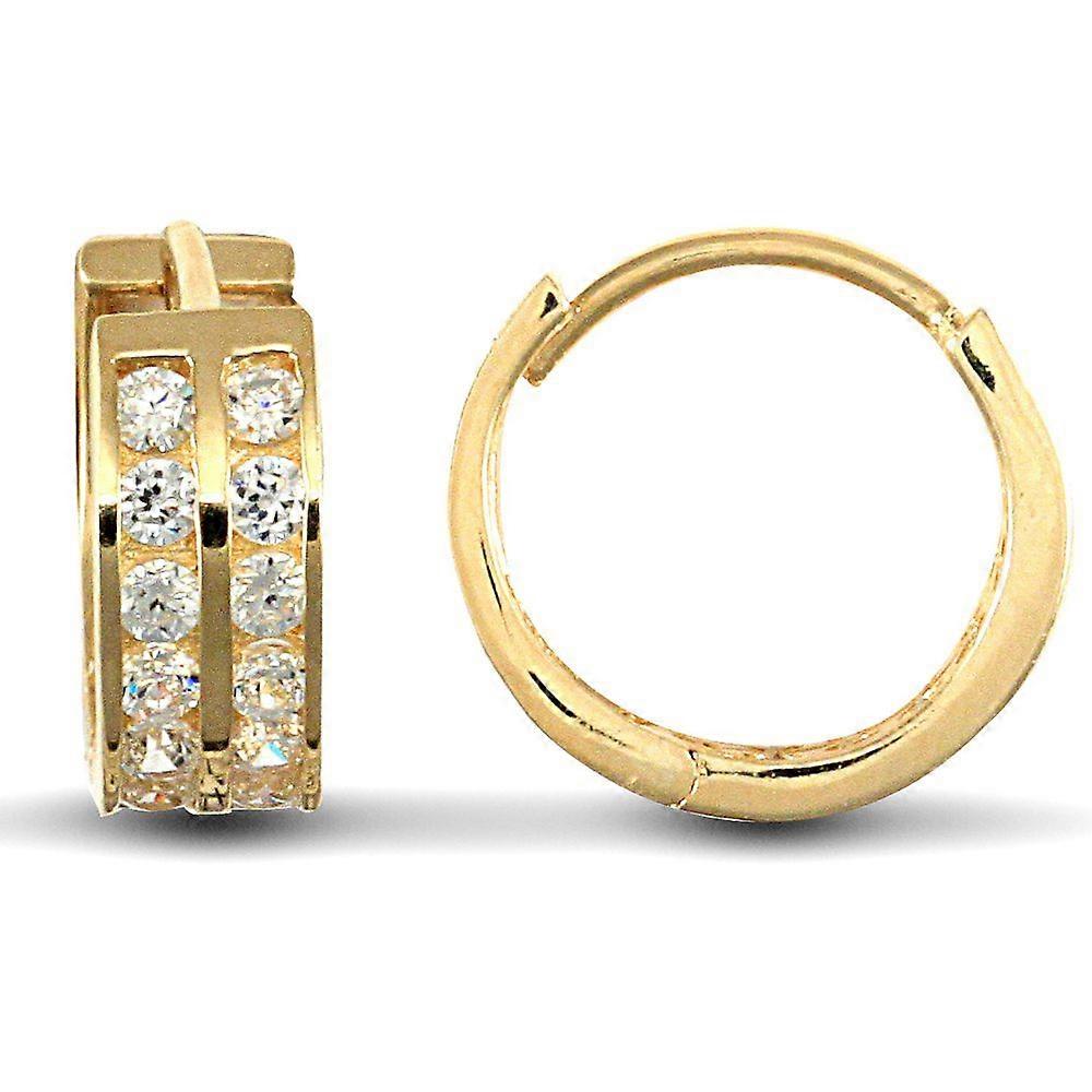 Jewelco London Ladies Solid 9ct Yellow Gold White Round Brilliant Cubic Zirconia 2 Row Eternity 4.5mm Huggie Hoop Earrings 12mm