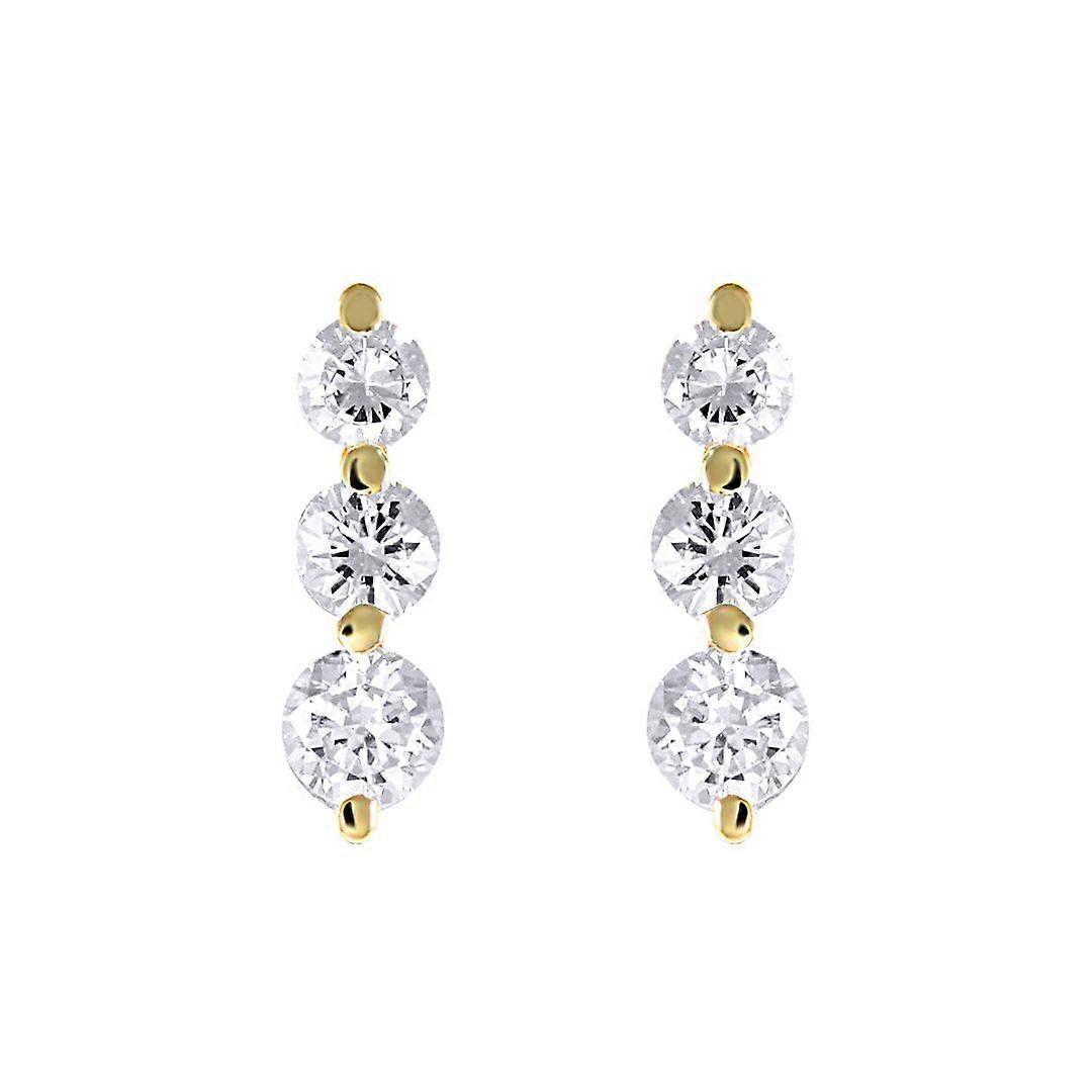 Jewelco London Ladies Solid 9ct Yellow Gold White Round Brilliant Cubic Zirconia 3 Stone Trilogy Stud Drop Earrings, 4-5mm