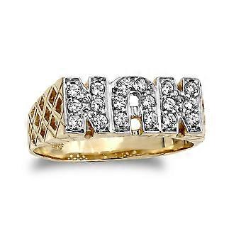 Jewelco London Ladies Solid 9ct Yellow Gold White Round Brilliant Cubic Zirconia Basket Sides Pave NAN Ring