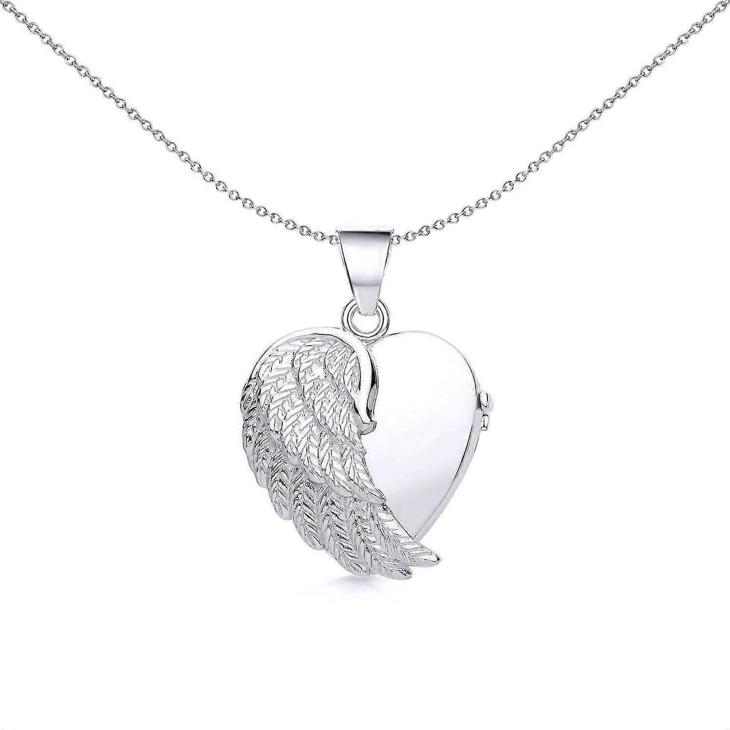Jewelco London Ladies Sterling Silver Angel Wing Love Heart Locket Necklace 18 inch