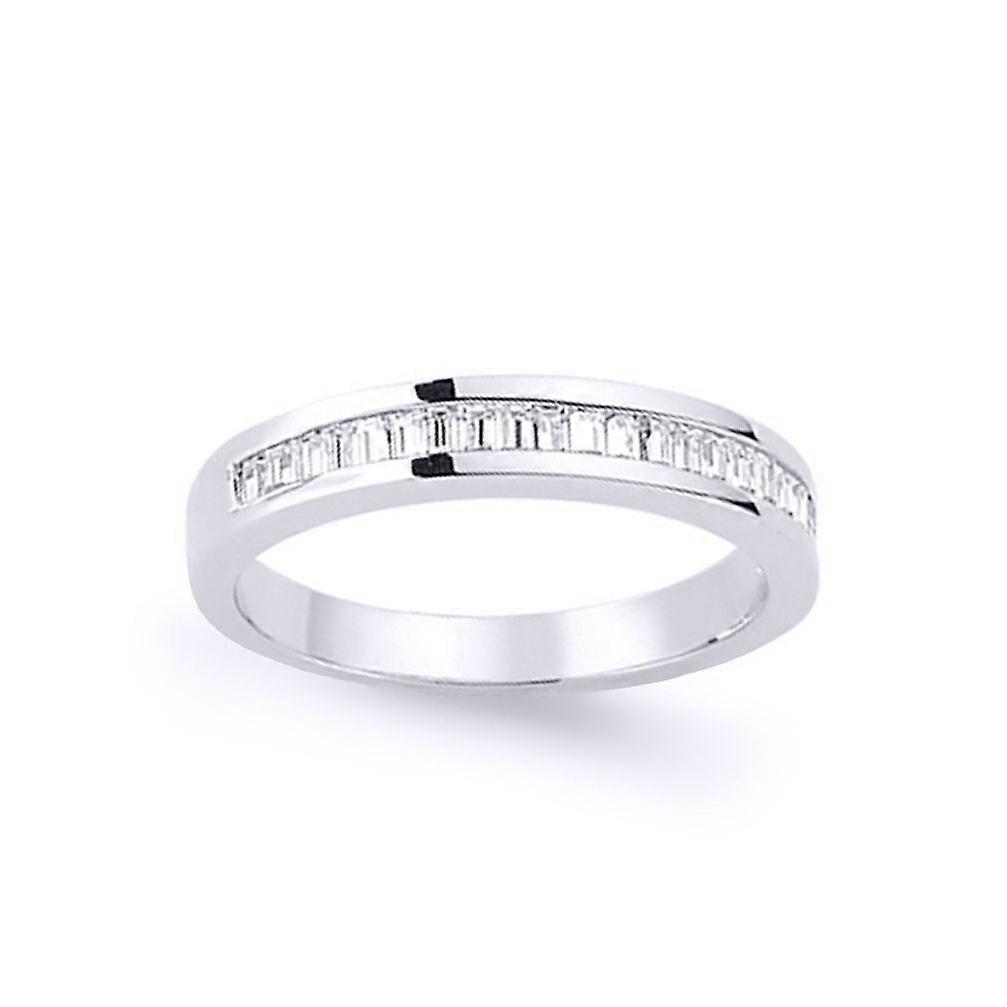 Jewelco London Ladies Sterling Silver Baguette Cubic Zirconia Channel Set Eternity Ring