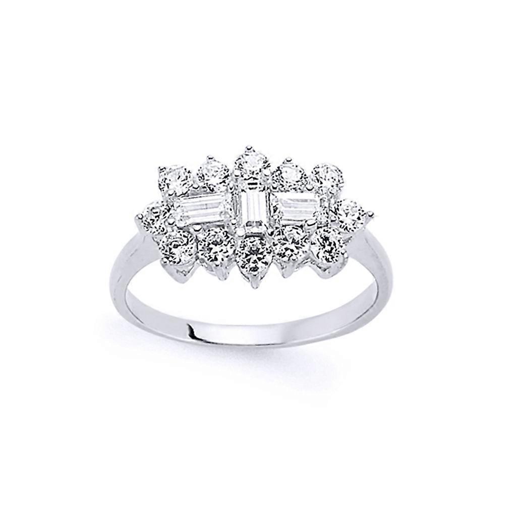 Jewelco London Ladies Sterling Silver Baguette Cubic Zirconia Trilogy Boat Cluster Engagement Ring