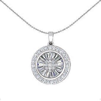 Jewelco London Ladies Sterling Silver Baguette CZ Shimmering Sunshine Cluster Halo Pendant Necklace 18 inch