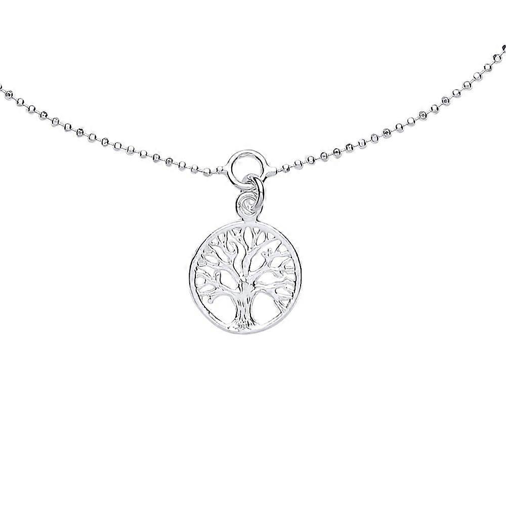 Jewelco London Ladies Sterling Silver Bead Chain Tree of Life Charm Anklet 13mm 9 + 1 inch