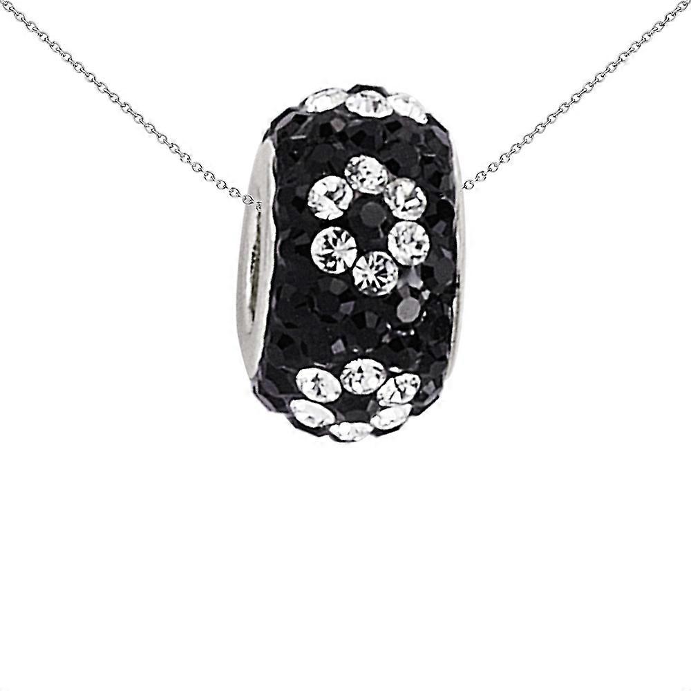 Jewelco London Ladies Sterling Silver Black Crystal Daisy Slider Bead Pendant Necklace 18 inch