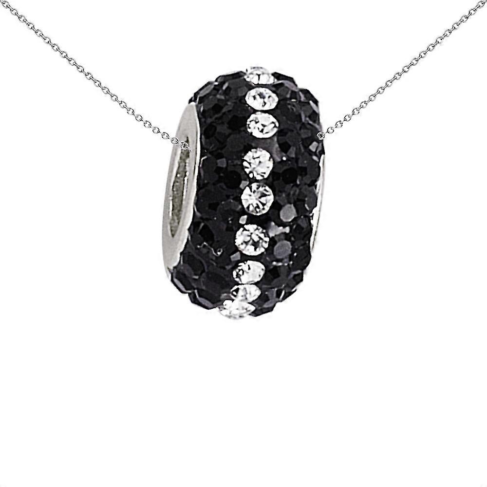 Jewelco London Ladies Sterling Silver Black Crystal Line Slider Bead Pendant Necklace 18 inch