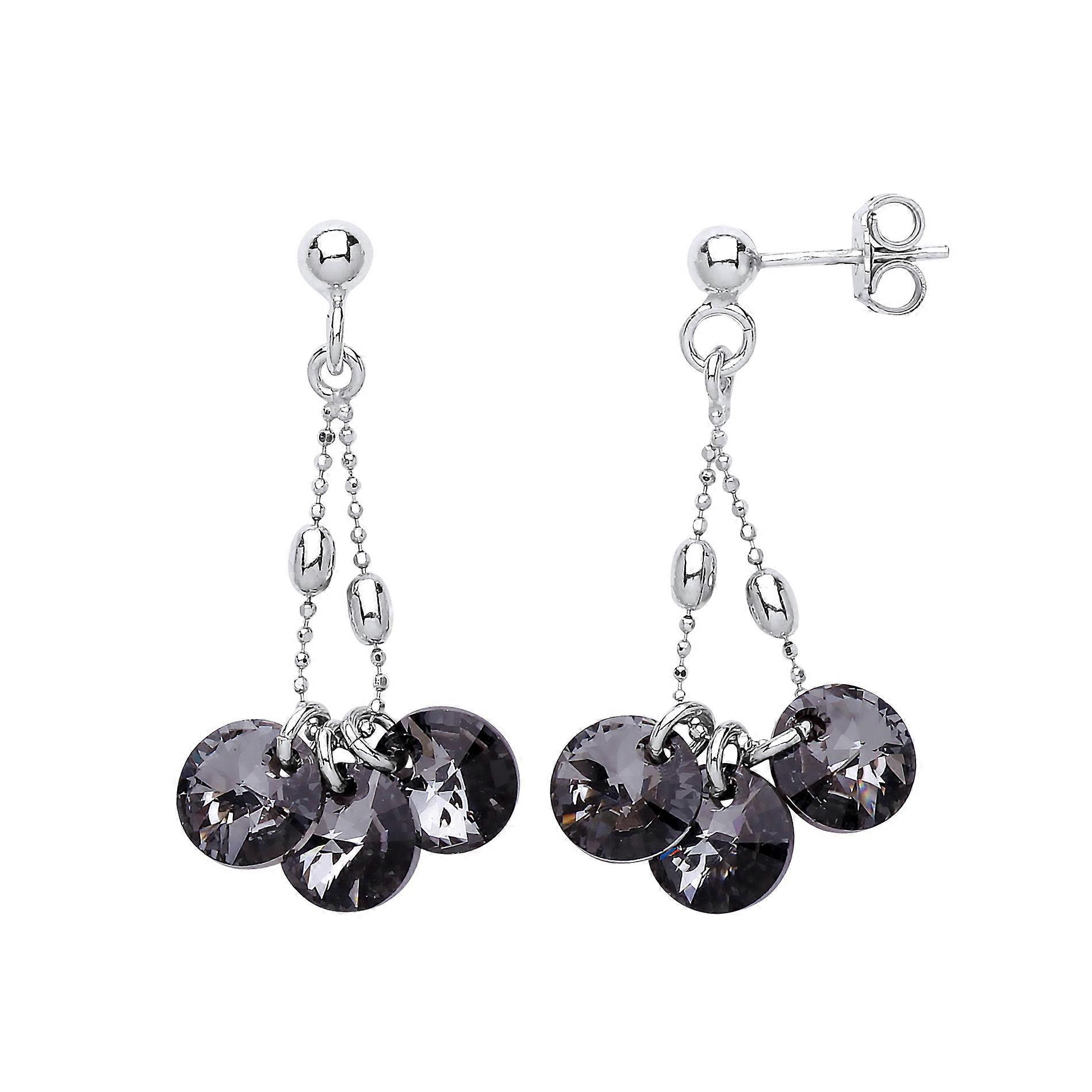Jewelco London Ladies Sterling Silver Black Crystal String Lights Drop Earrings