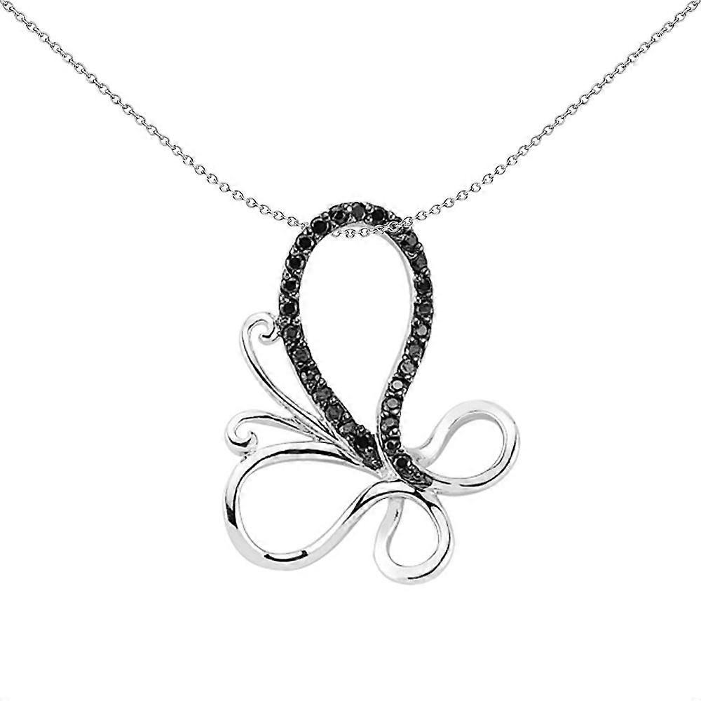 Jewelco London Ladies Sterling Silver Black Cubic Zirconia Butterfly Loopy Outline Pendant Necklace 18 inch