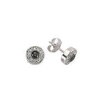 Jewelco London Ladies Sterling Silver Black Cubic Zirconia Flat Halo Stud Earrings