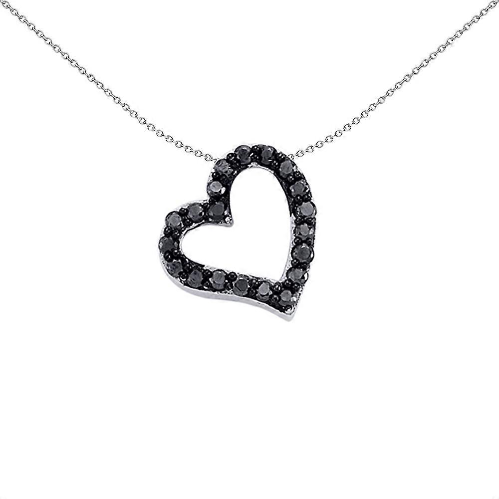 Jewelco London Ladies Sterling Silver Black Cubic Zirconia Love Heart Pendant Necklace 18 inch