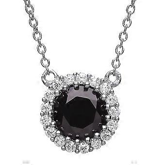 Jewelco London Ladies Sterling Silver Black Cubic Zirconia Solitaire Halo Charm Necklace 16 + 2 inch