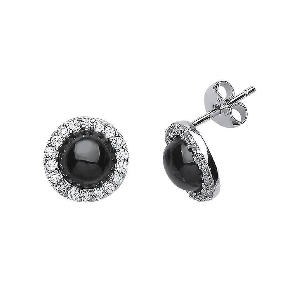 Jewelco London Ladies Sterling Silver Black Onyx and Cubic Zirconia Halo Stud Earrings