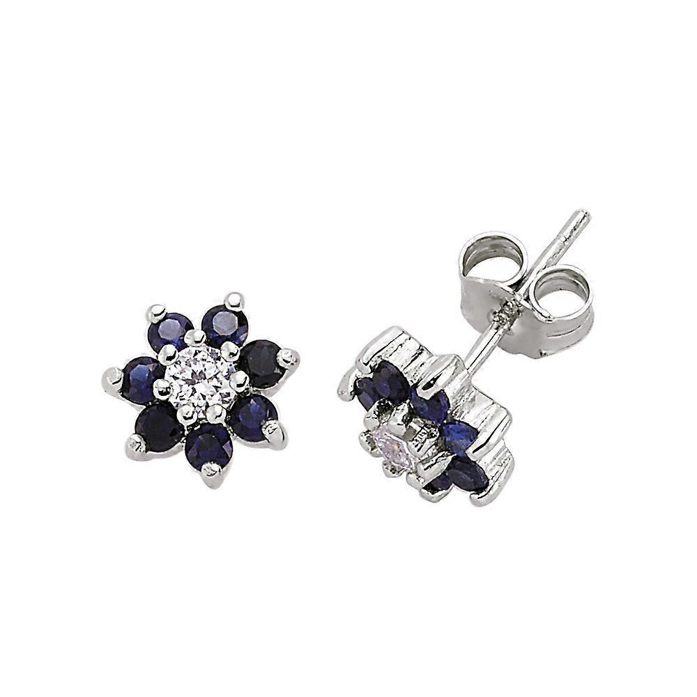 Jewelco London Ladies Sterling Silver Blue Cubic Zirconia Flower Cluster Stud Earrings