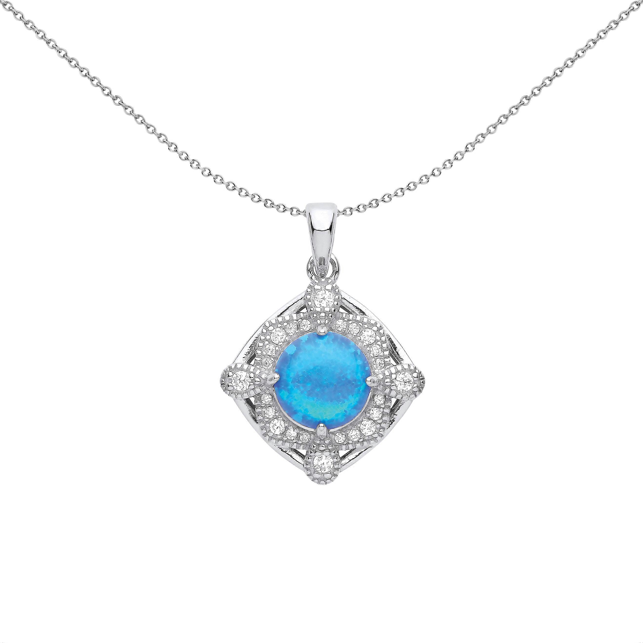Jewelco London Ladies Sterling Silver Blue Opal CZ Luxury Mosaic Pool Pear Cushion Pendant Necklace 18 inch