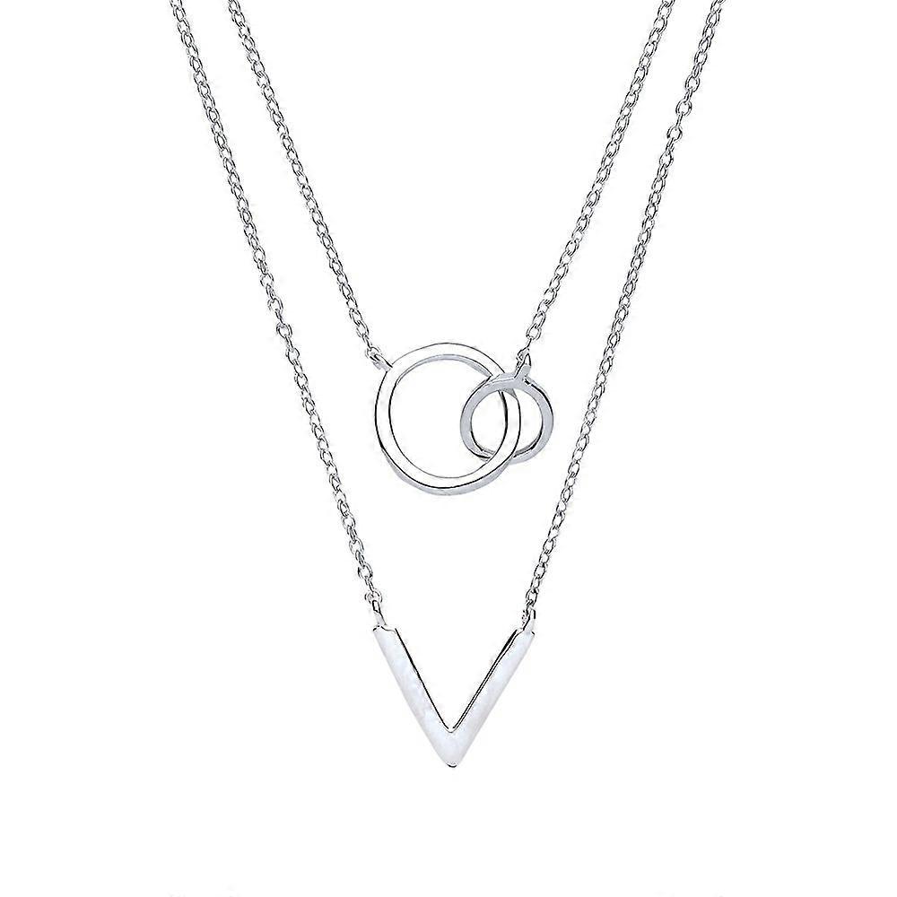 Jewelco London Ladies Sterling Silver Chinese Linking Rings Double Drop Necklace