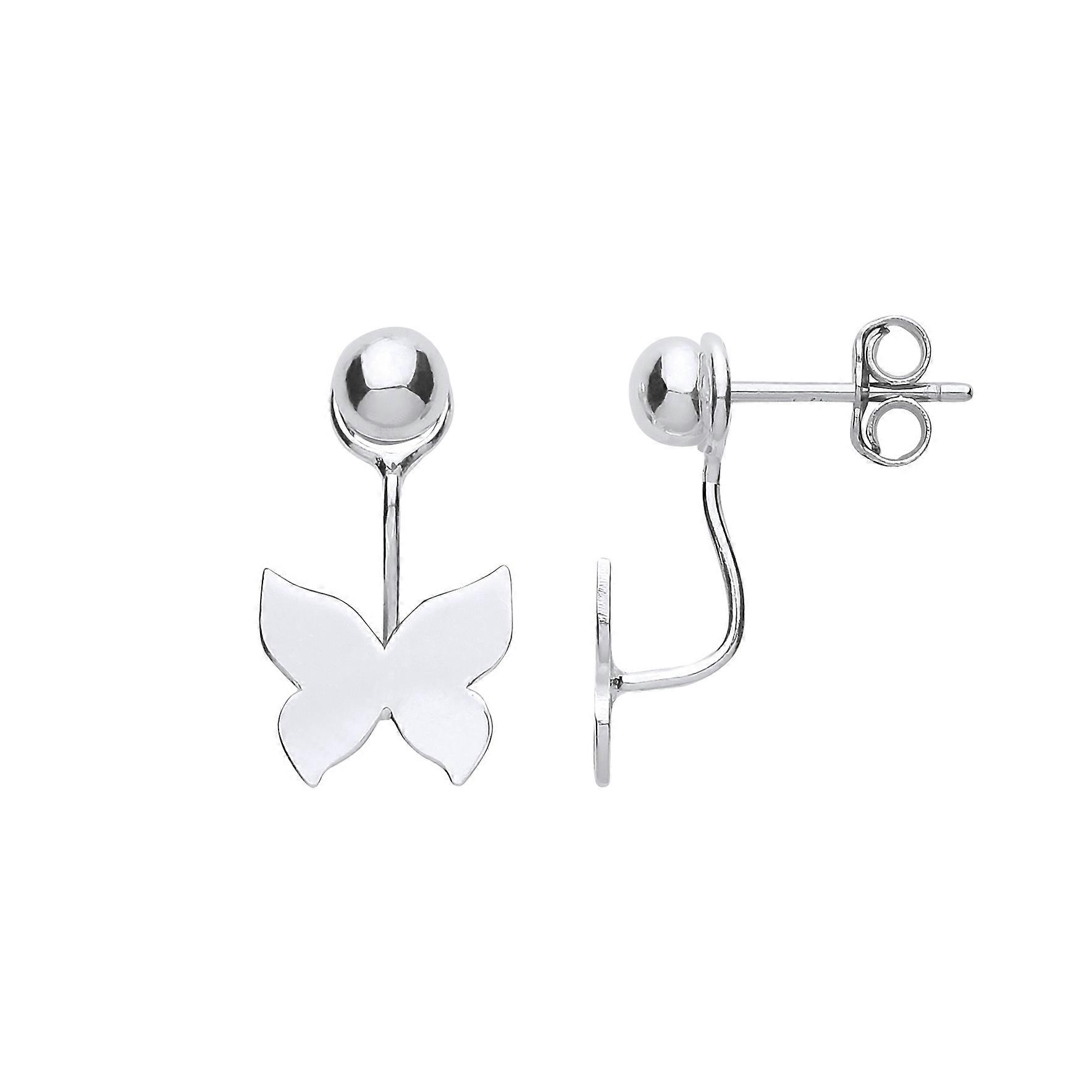 Jewelco London Ladies Sterling Silver Convertible Butterfly Ball Stud Drop Jacket Earrings