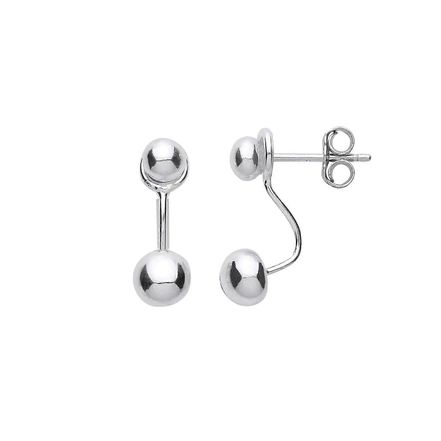 Jewelco London Ladies Sterling Silver Convertible Twin Ball Stud Drop Jacket Earrings