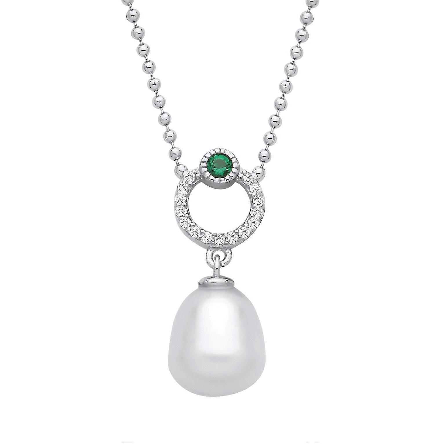 Jewelco London presents this piece from its latest collection of jewellery, a ladies lavalier necklace made of rhodium plated sterling silver in a eyeball halo lantern design, set with cream nugget pearl, green round cubic zirconia and white round cubic zirconia gemstones. Approx dimensions: 16 inch | Height: 22mm Width: 8.4mm Weight: 3.5g GEMSTONE: Pearl GEMSTONE 2: Cubic Zirconia, Round, Green SKU: GVK490