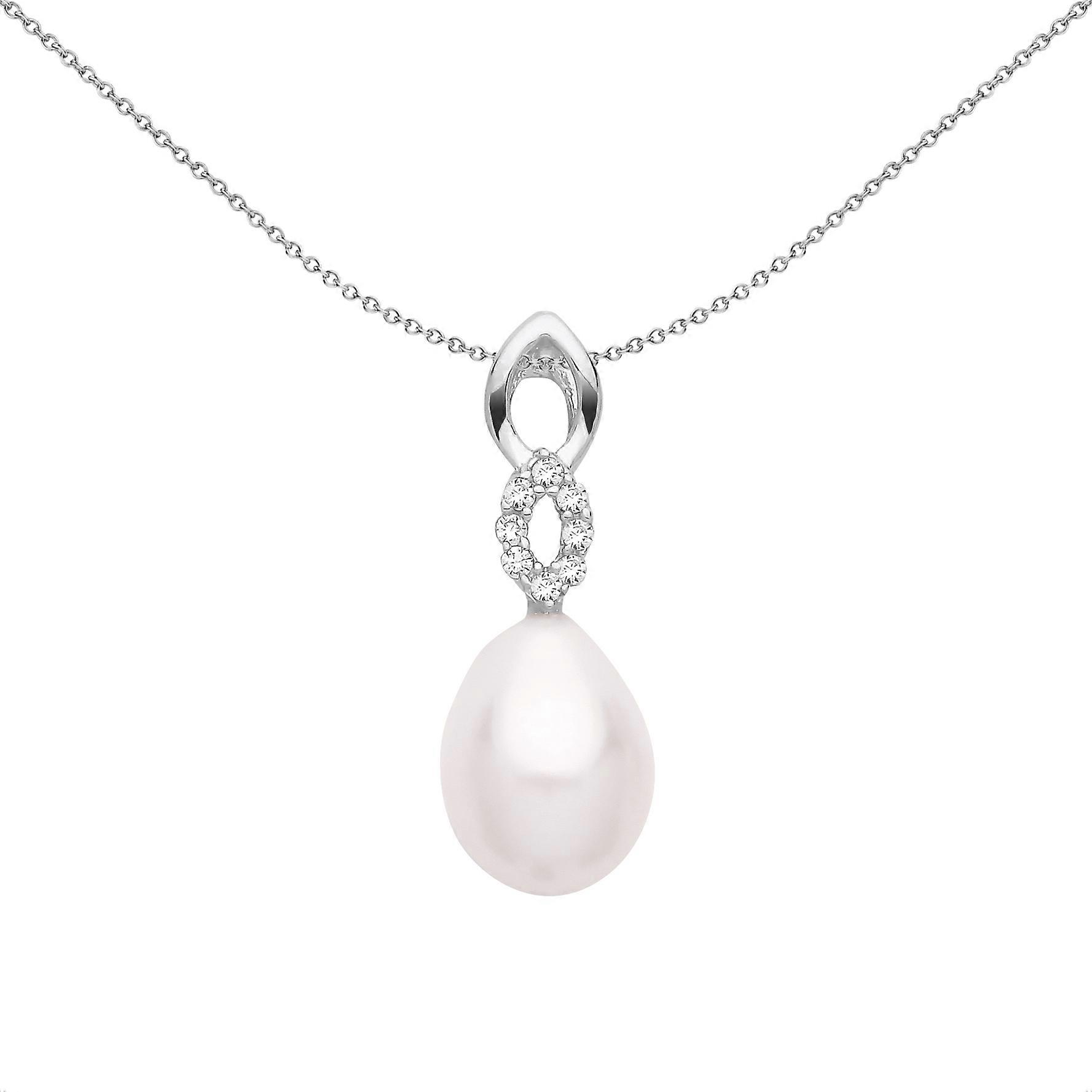 Jewelco London Ladies Sterling Silver Cream Pear Pearl CZ Infinity Cats Eyes Halo Peach Pear Pendant Necklace 18 inch