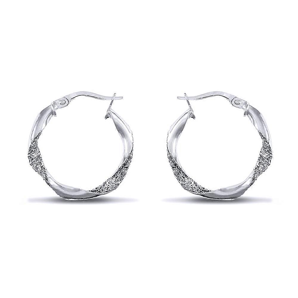 Jewelco London Ladies Sterling Silver Crushed Ice Glitter Twist 3mm Hoop Earrings 21mm