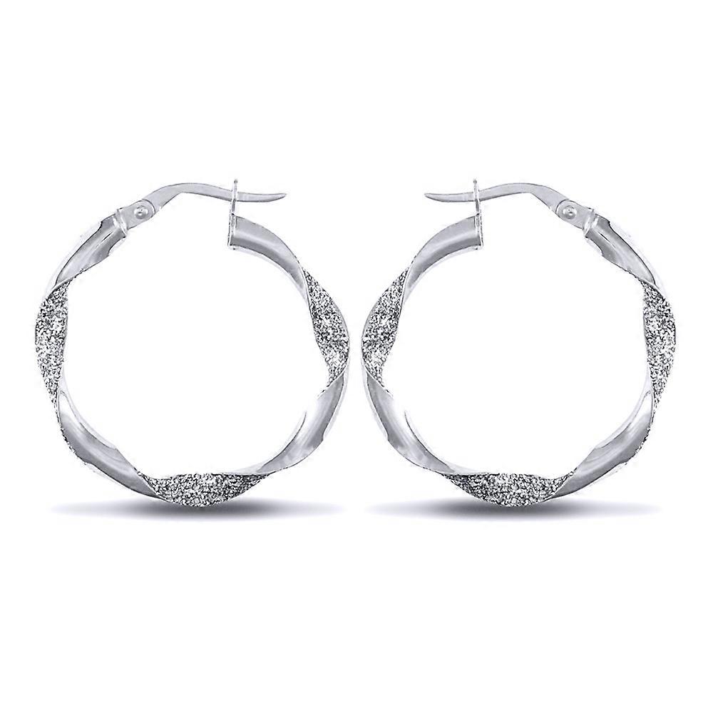 Jewelco London Ladies Sterling Silver Crushed Ice Glitter Twist 3mm Hoop Earrings 25mm