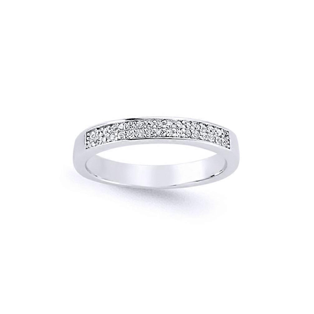 Jewelco London Ladies Sterling Silver Cubic Zirconia 2 Row Pave Eternity Ring