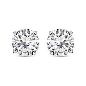 Jewelco London Ladies Sterling Silver Cubic Zirconia 4 Claw Solitaire Stud Earrings 7mm 2.60cts