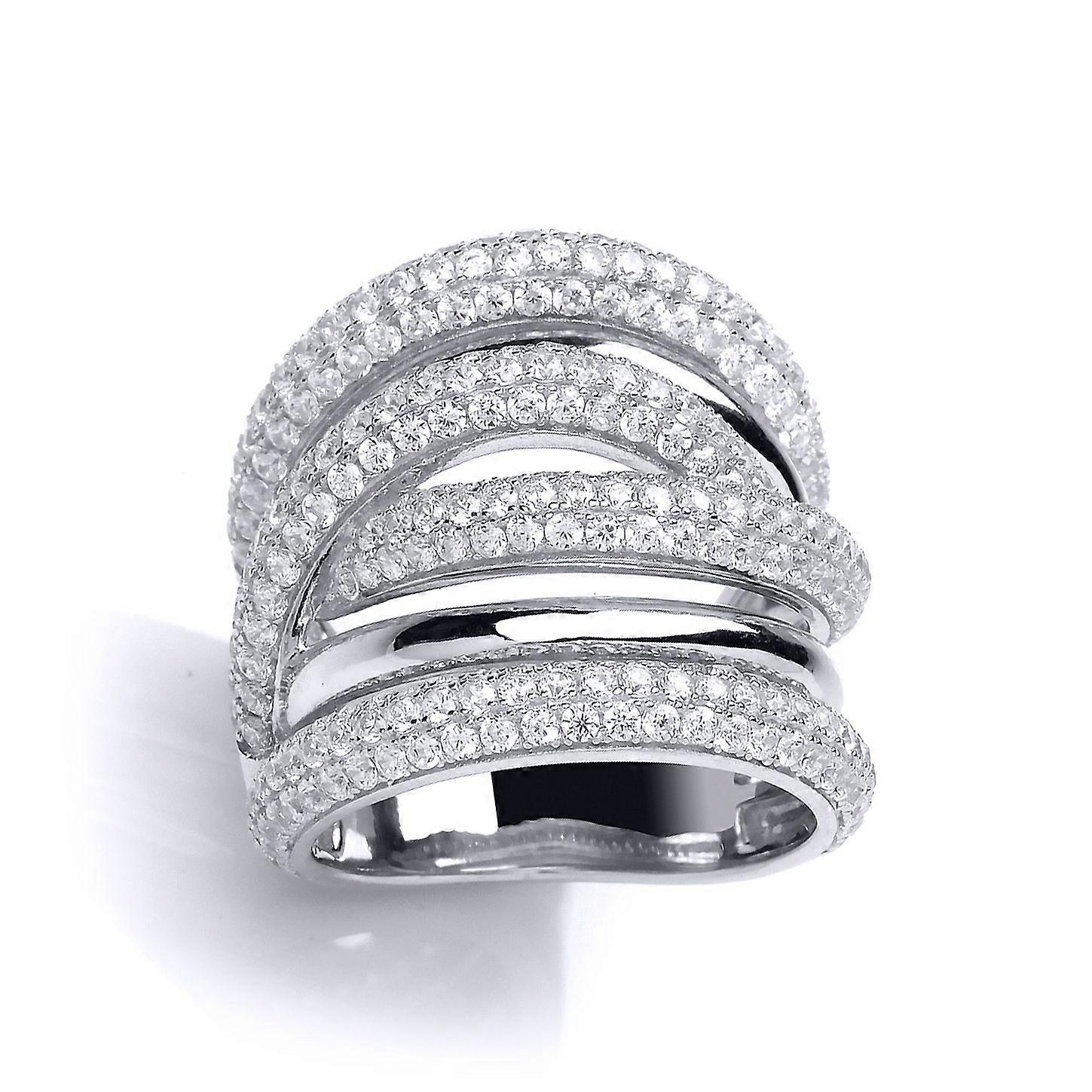 Jewelco London Ladies Sterling Silver Cubic Zirconia 6 Row Pave Crossover Dress Ring
