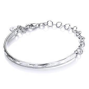 Jewelco London Ladies Sterling Silver Cubic zirconia Adjustable Floral Engraved Semi Bangle Bracelet 4mm