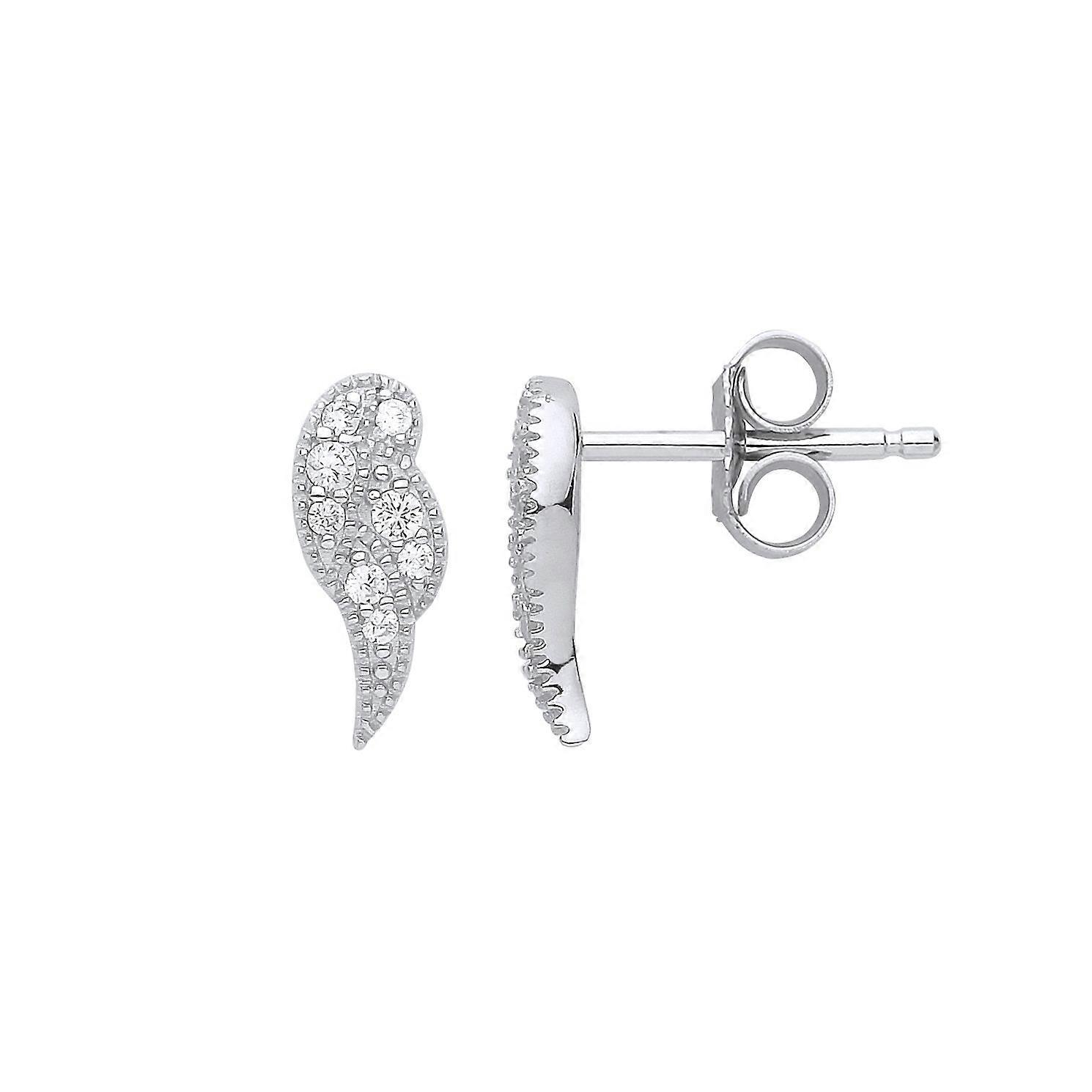 Jewelco London Ladies Sterling Silver Cubic Zirconia Angel Wings Stud Drop Earrings