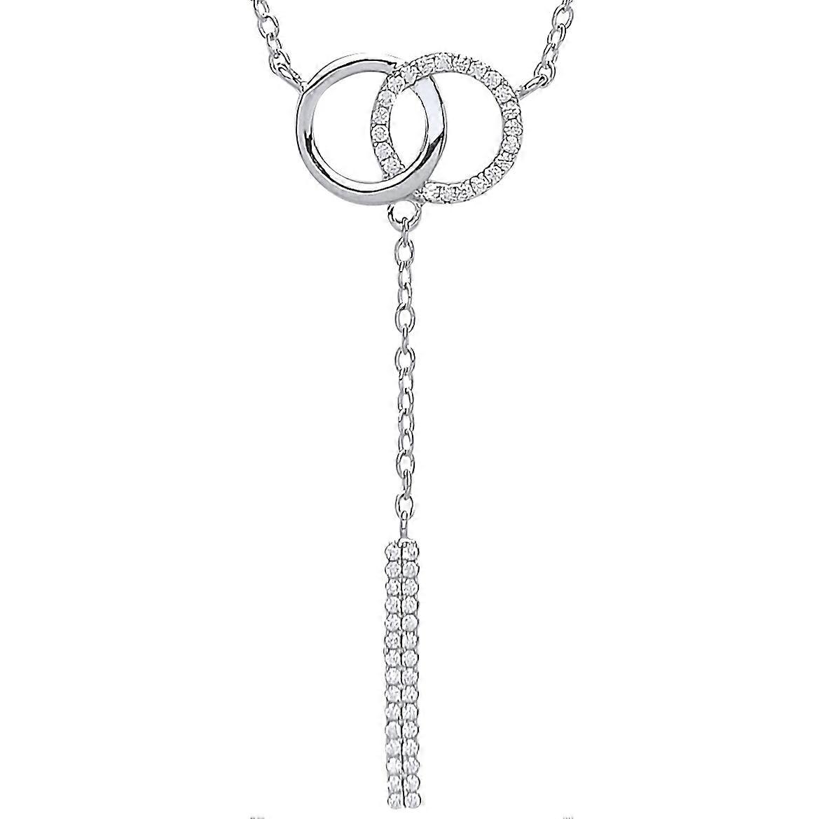 Jewelco London Ladies Sterling Silver Cubic Zirconia Art Deco Eternity Drop Charm Necklace 16 inch