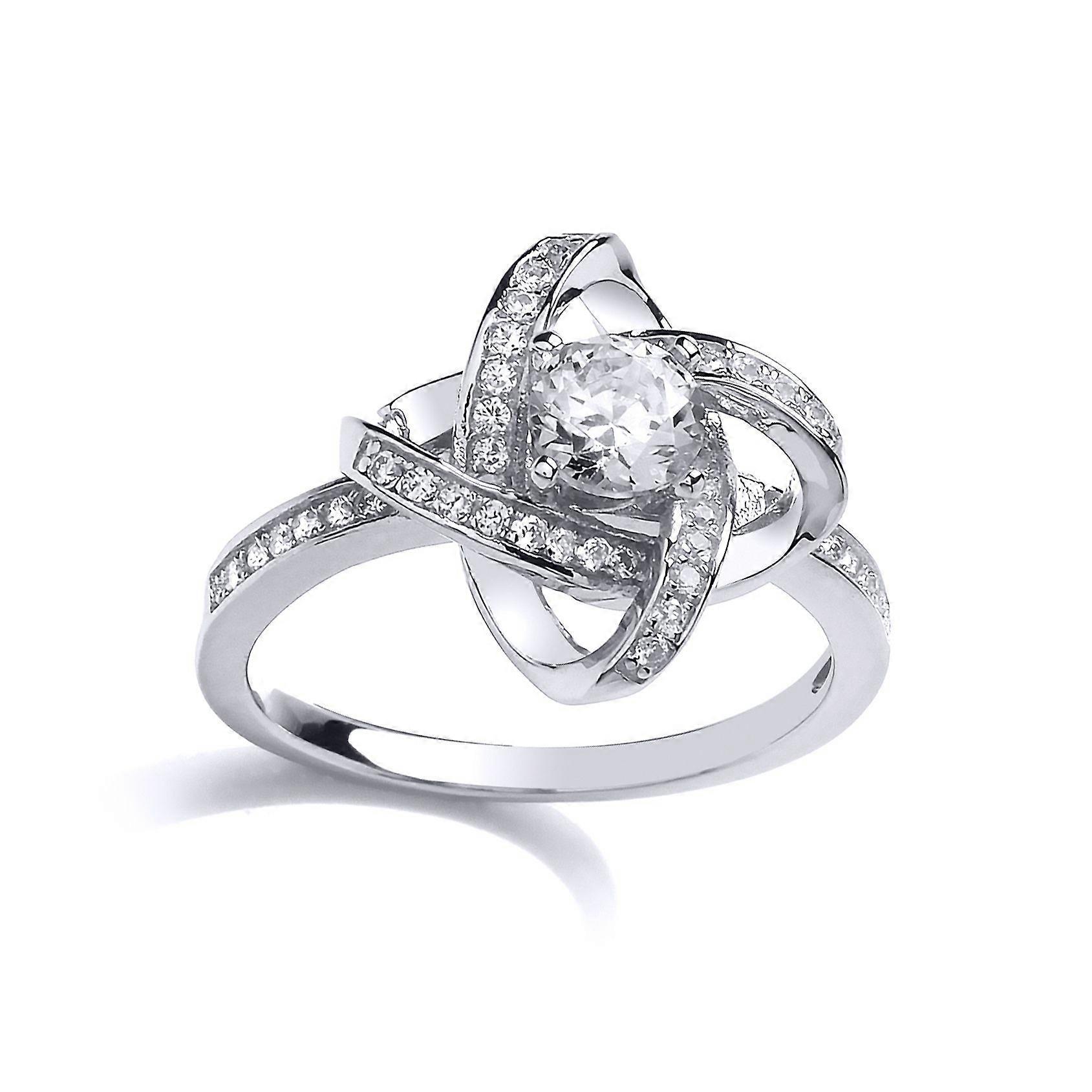 Jewelco London Ladies Sterling Silver Cubic Zirconia Atom Halo Solitaire Engagement Ring