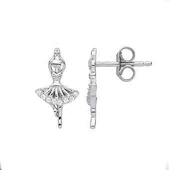 Jewelco London Ladies Sterling Silver Cubic Zirconia Ballerina Ballet Dancer Stud Drop Earrings