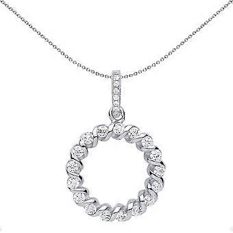 Jewelco London Ladies Sterling Silver Cubic Zirconia Candy Twist Wreath Halo Pendant Necklace 18 inch