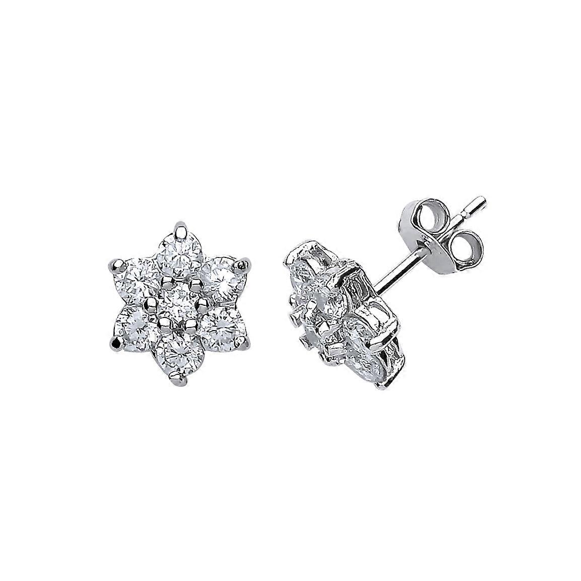 Jewelco London Ladies Sterling Silver Cubic Zirconia Classic Cluster Stud Earrings