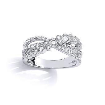 Jewelco London Ladies Sterling Silver Cubic Zirconia Crossover Bubbly Eternity Ring