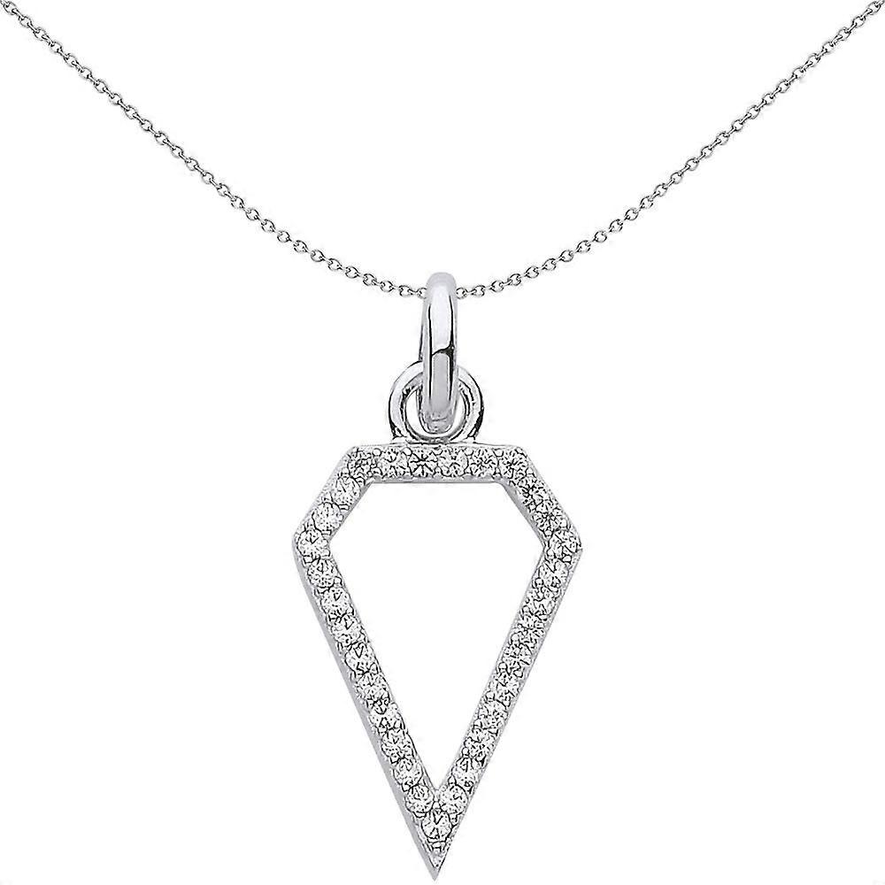 Jewelco London Ladies Sterling Silver Cubic Zirconia Diamond Shape Charm Necklace