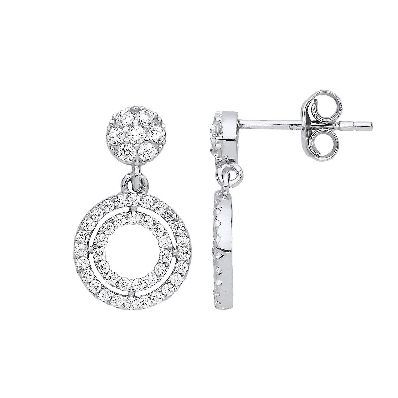 Jewelco London Ladies Sterling Silver Cubic Zirconia Double Halo Hoop Stud Drop Earrings