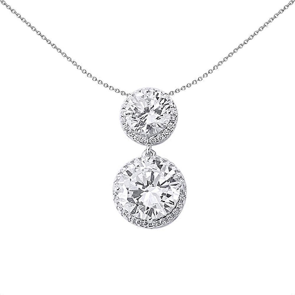 Jewelco London Ladies Sterling Silver Cubic Zirconia Double Halo Pendant Necklace 18 inch