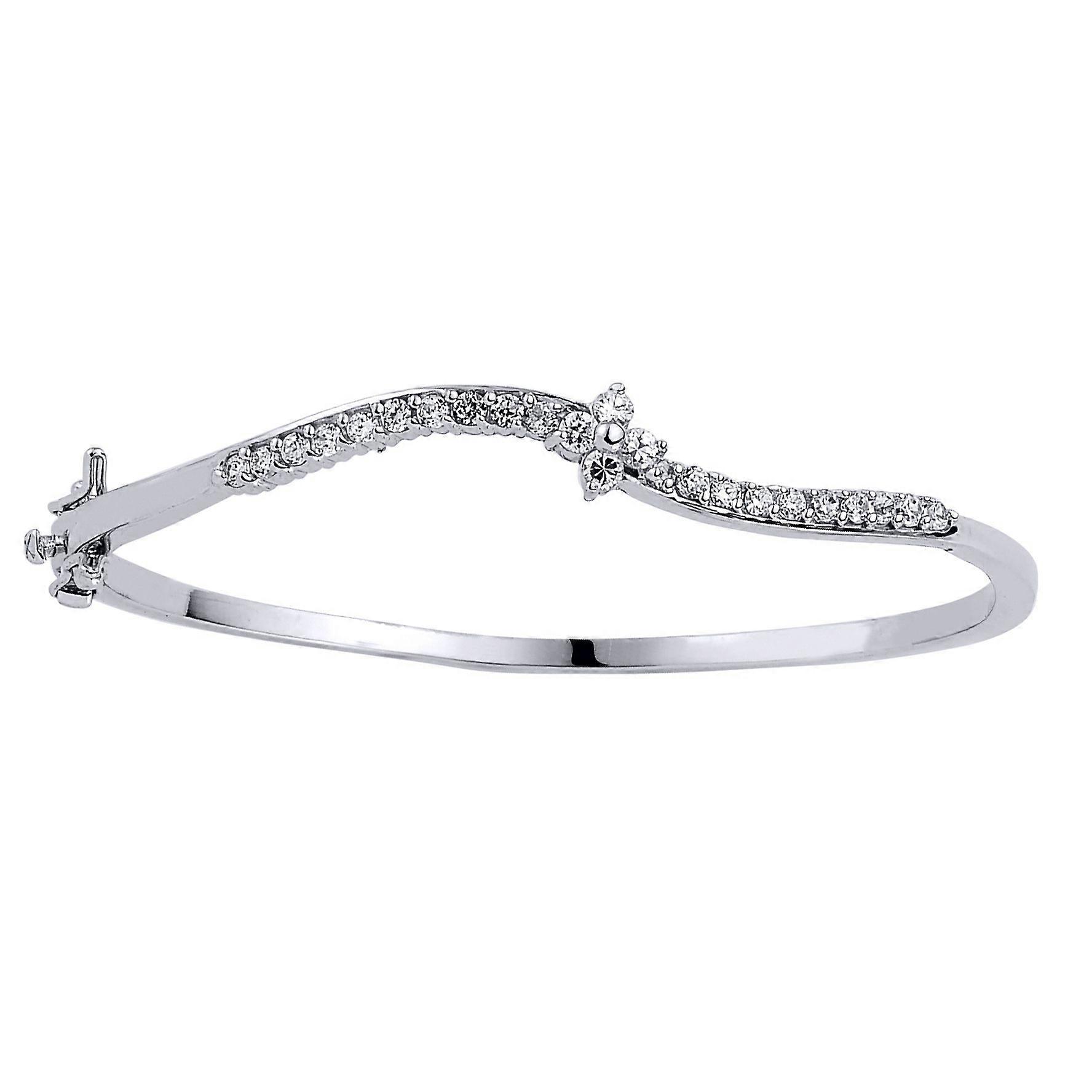 Jewelco London Ladies Sterling Silver Cubic Zirconia Eternity Wave Bangle Bracelet