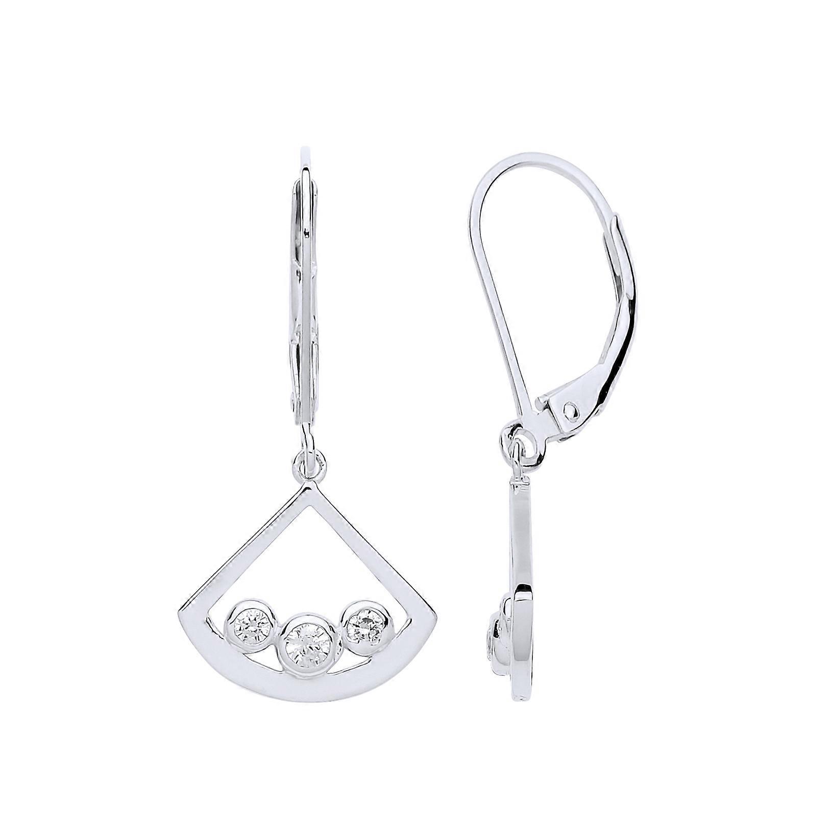 Jewelco London Ladies Sterling Silver Cubic Zirconia Fan Cone Trilogy Drop Earrings