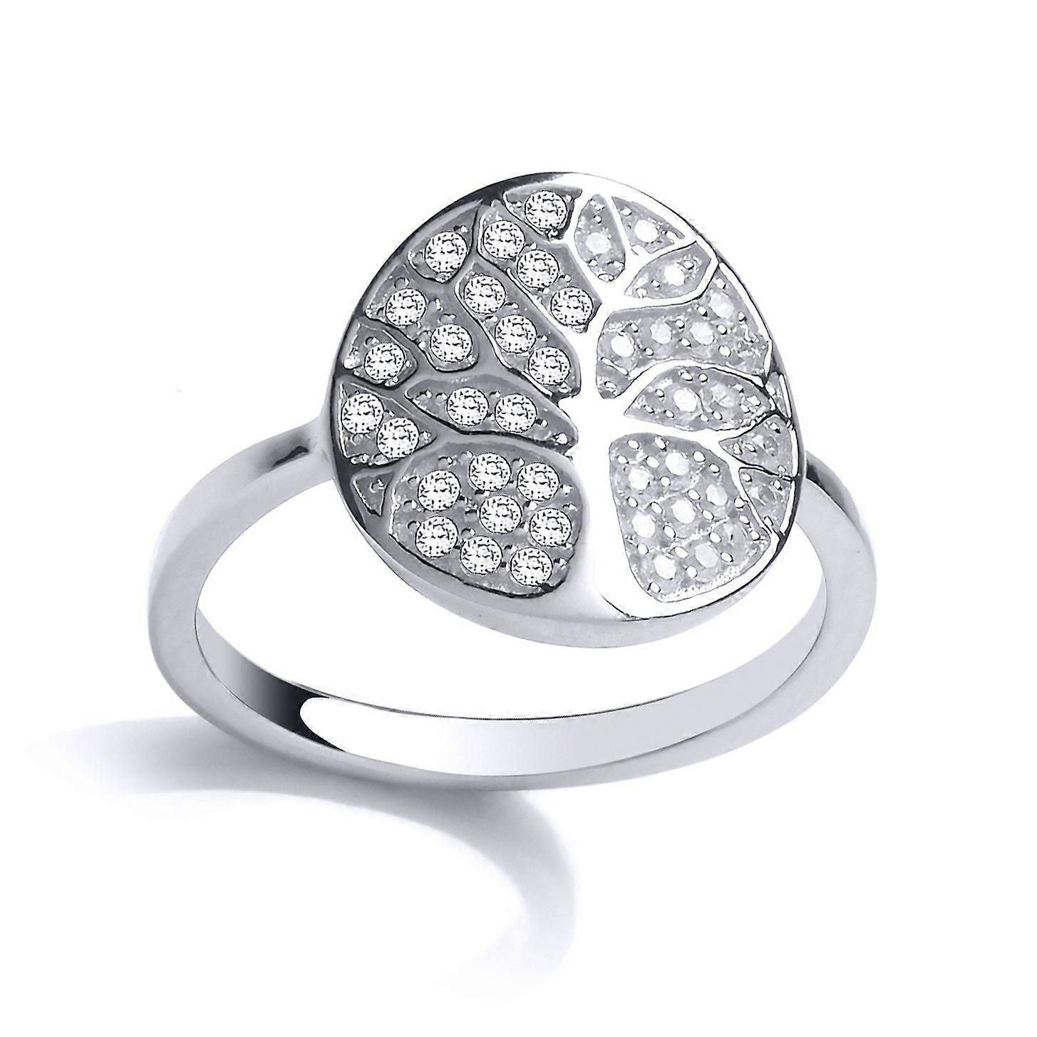 Jewelco London Ladies Sterling Silver Cubic Zirconia Firefly Tree of Life Signet Ring