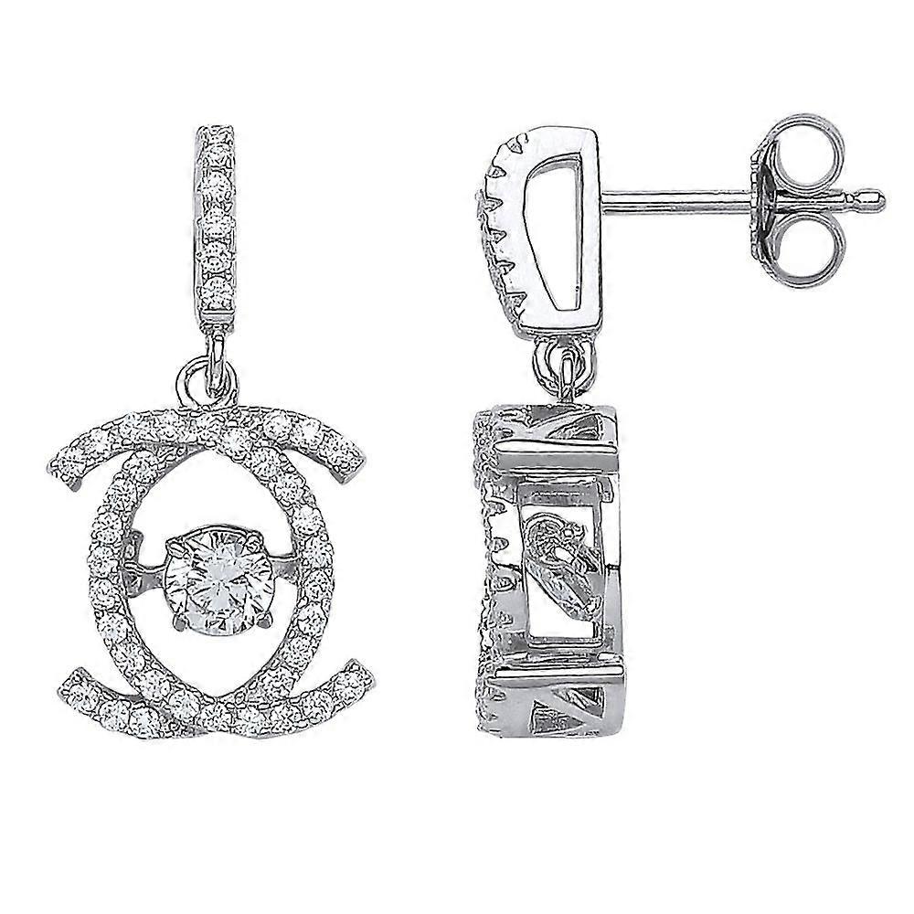 Jewelco London Ladies Sterling Silver Cubic Zirconia Floating Stone Drop Earrings