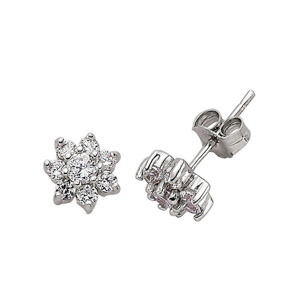 Jewelco London Ladies Sterling Silver Cubic Zirconia Flower Cluster Stud Earrings
