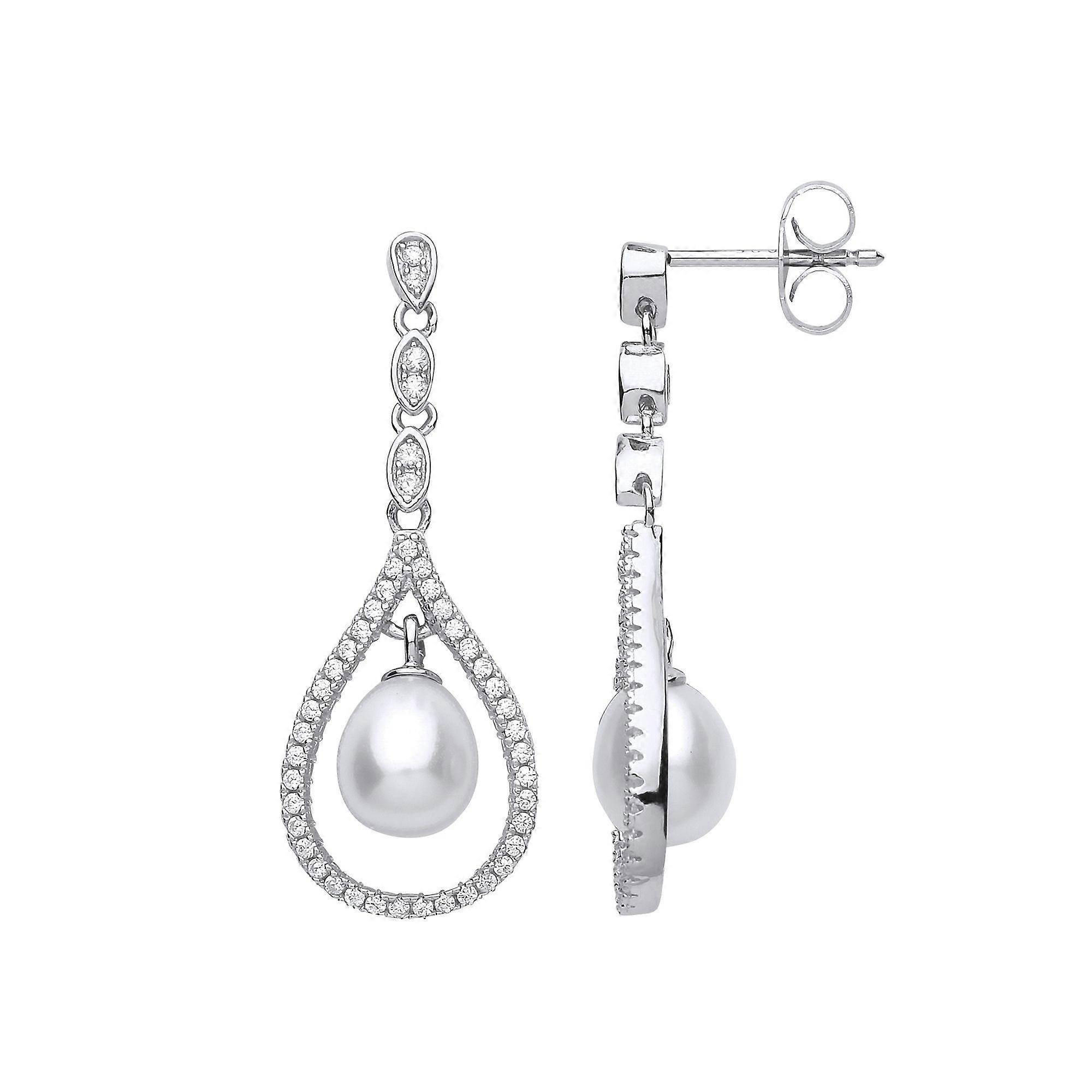 Jewelco London Ladies Sterling Silver Cubic Zirconia & Freshwater Cultured Pearl Tears of Joy Drop Earrings 7x8mm