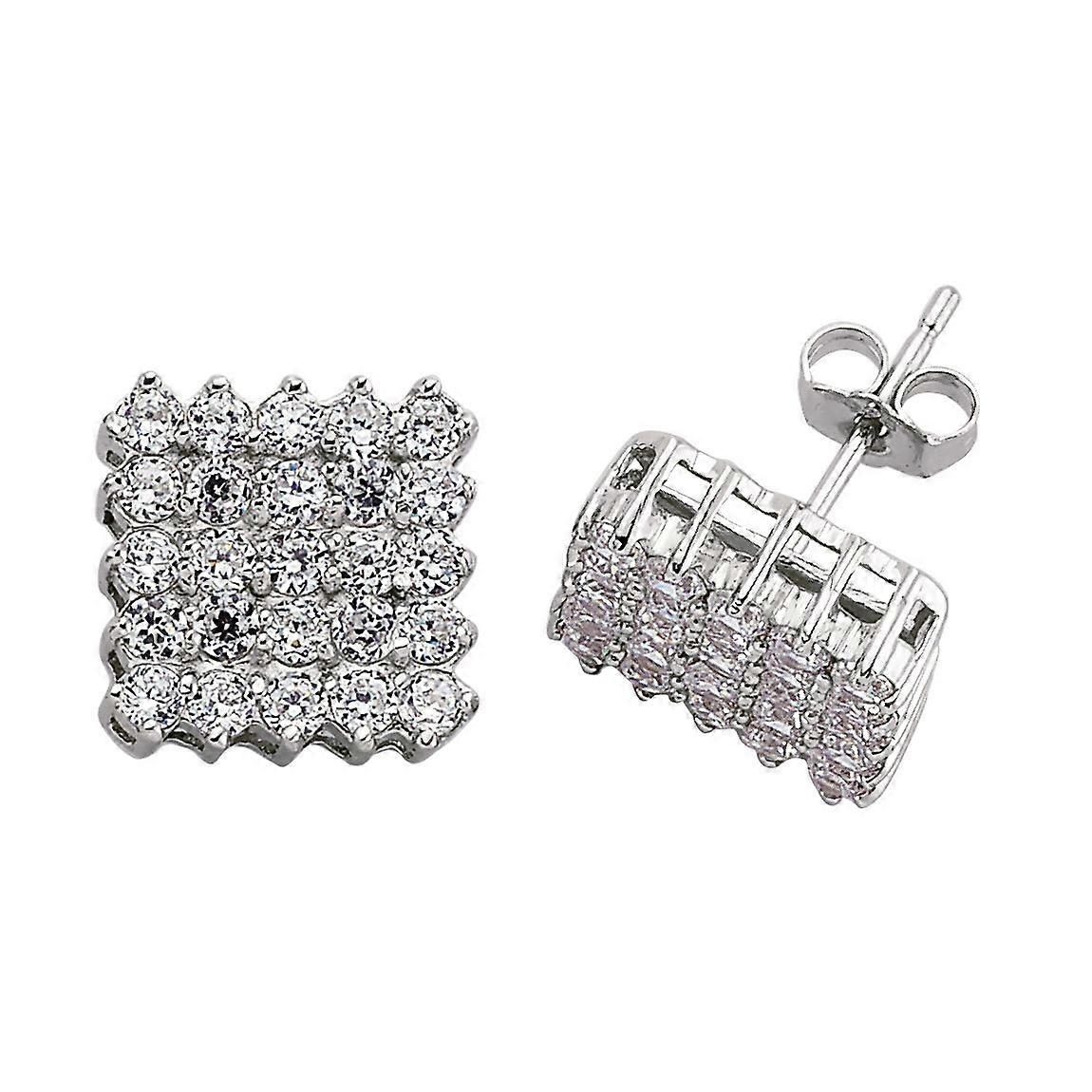 Jewelco London Ladies Sterling Silver Cubic Zirconia Grid Cluster Stud Earrings