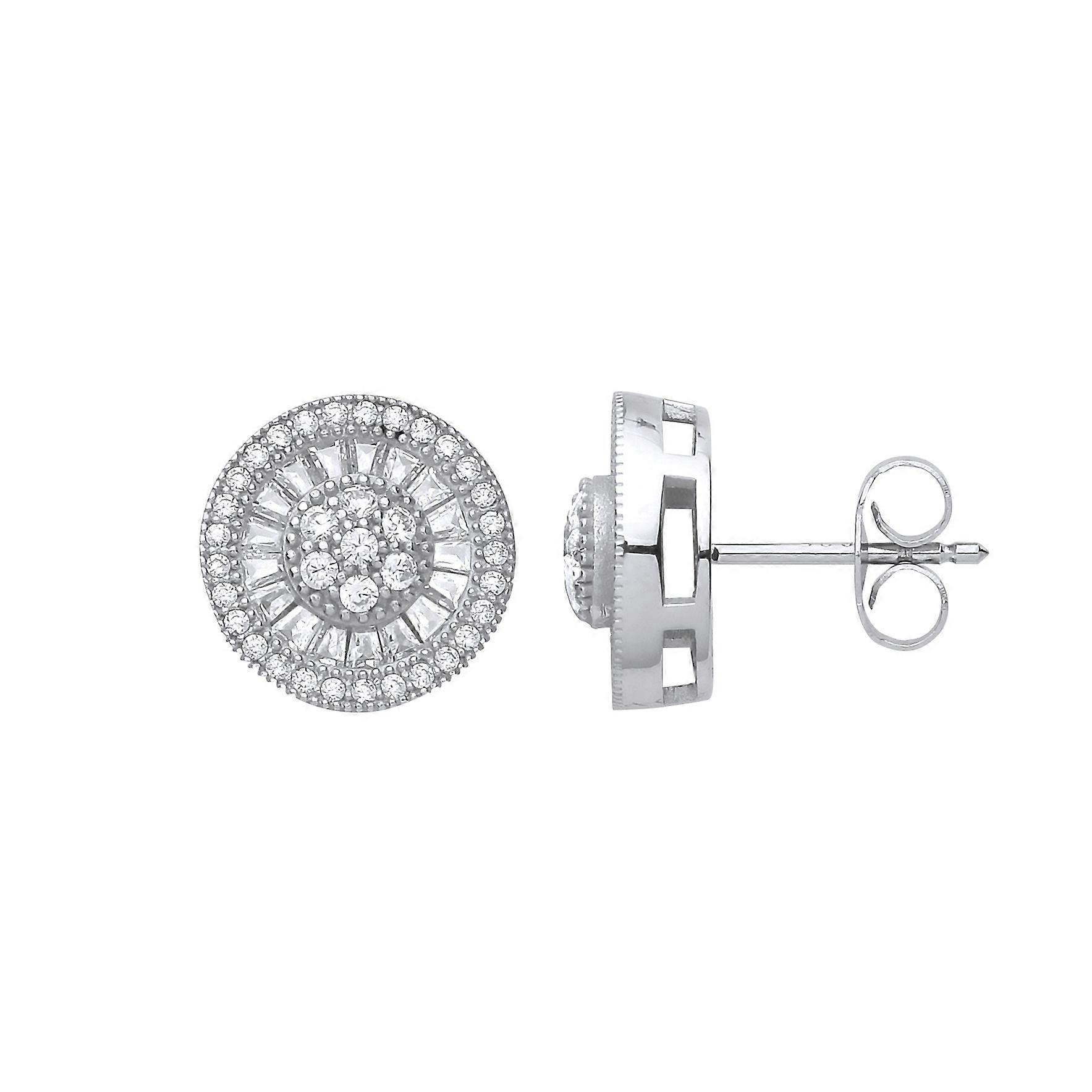 Jewelco London Ladies Sterling Silver Cubic Zirconia Halo Cluster Sunburst Stud Earrings