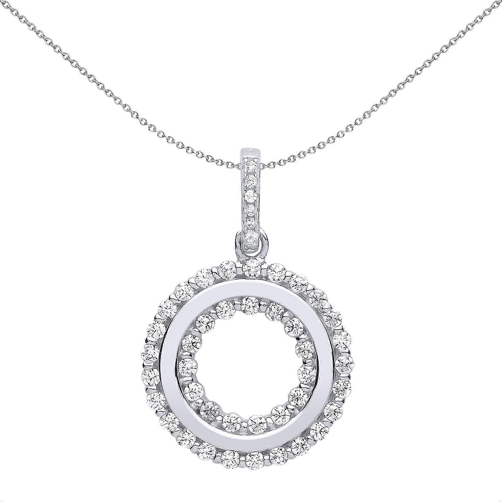 Jewelco London Ladies Sterling Silver Cubic Zirconia Halo Donut Ring Pendant Necklace 18 inch