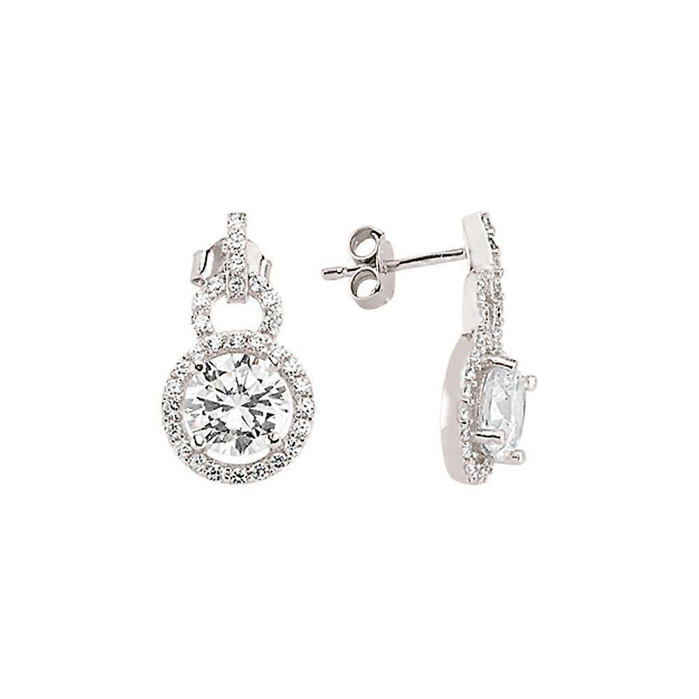 Jewelco London Ladies Sterling Silver Cubic Zirconia Halo Drop Earrings