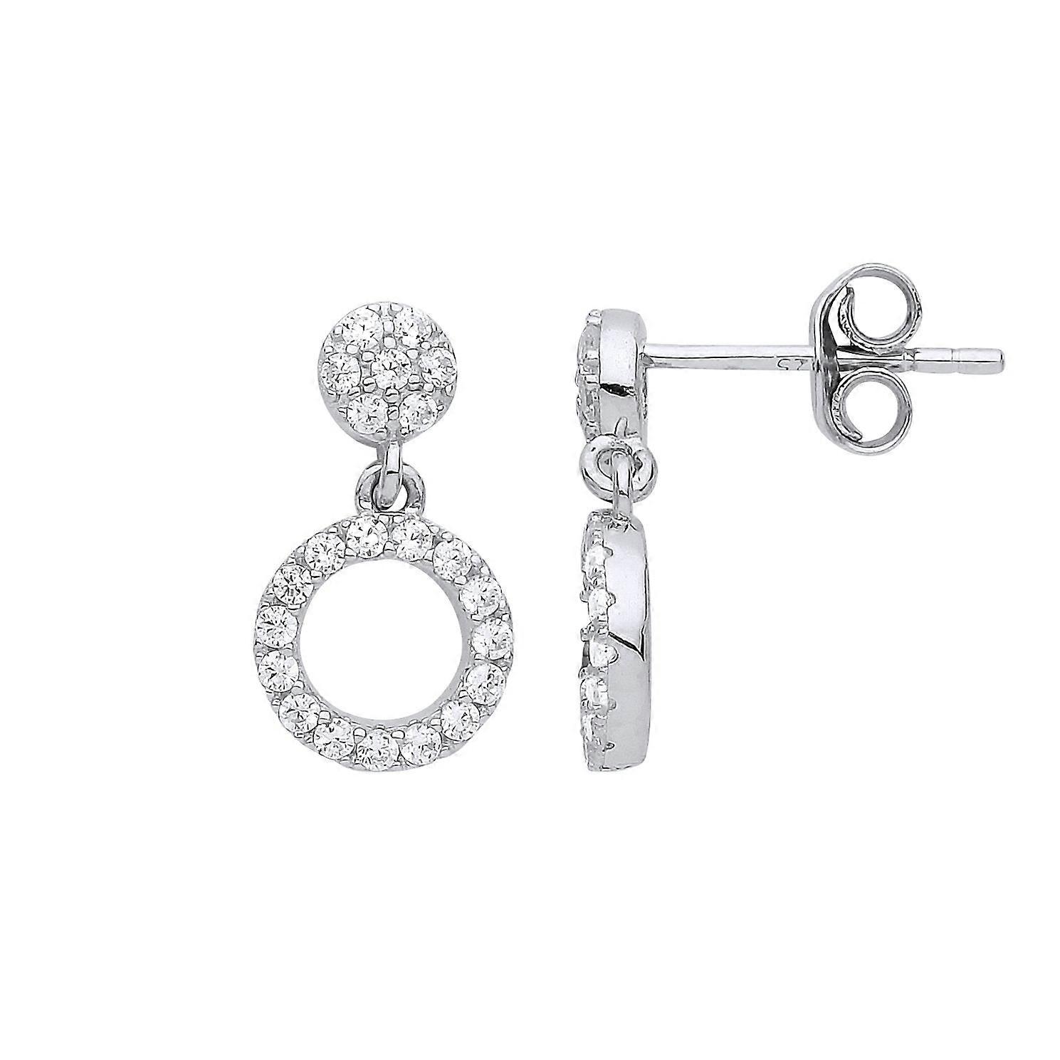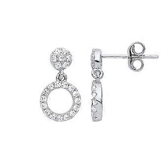 Jewelco London Ladies Sterling Silver Cubic Zirconia Halo Hoop Stud Drop Earrings